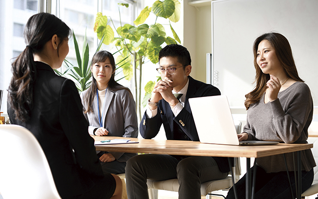 企業の人事担当者などの外部講師を交え、個人・集団面接、グループディスカッションの練習を行います。基本的なビジネスマナーも身につけます。